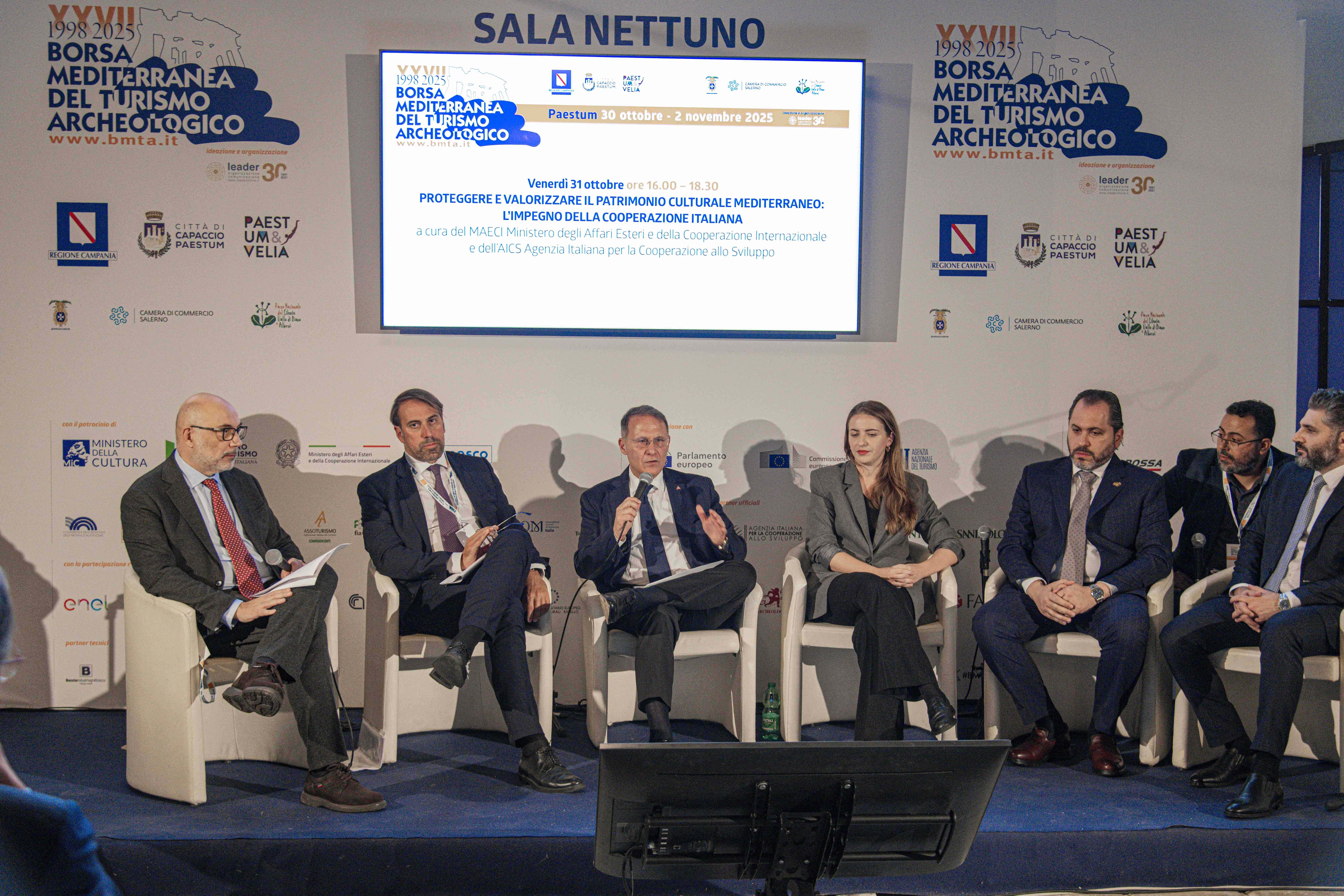 Il Vice Ministro degli Affari Esteri e della Cooperazione Internazionale, Edmondo Cirielli, è intervenuto oggi alla XXVII edizione della Borsa Mediterranea del Turismo Archeologico, inaugurando il panel “Proteggere e valorizzare il patrimonio culturale Mediterraneo: l’impegno della Cooperazione italiana”. La sessione istituzionale del panel ha visto anche la partecipazione della Vice Ministra per il Turismo, la Cultura e lo Sport dell’Albania e dei Ministri siriani della Cultura e del Turismo.