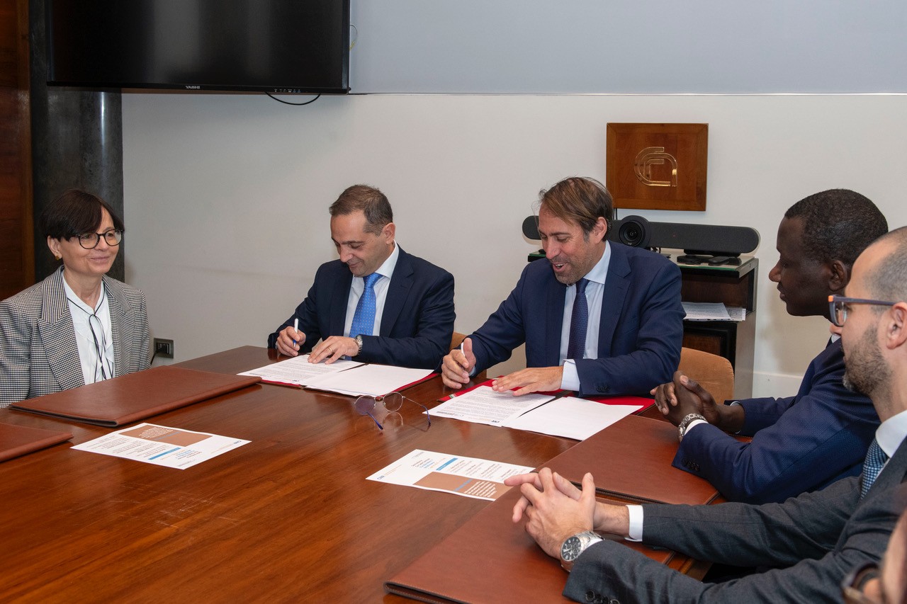 Il 1° aprile 2025, presso la Sala Volterra della Sede centrale del Consiglio nazionale delle ricerche (CNR)a Roma, si è tenuta la cerimonia di firma della convenzione tra l’Agenzia Italiana per la Cooperazione allo Sviluppo (AICS) e il Dipartimento di scienze umane, sociali, patrimonio culturale del CNR (CNR-DSU), nell’ambito del “Progetto di assistenza tecnica e ricerca per l’analisi e la valutazione d’impatto delle politiche per l’Impiego in Senegal” (Pro-Impact), sostenuto dalla Cooperazione Italiana e dall’Ambasciata italiana a Dakar. Sono intervenuti la Presidente del CNR Maria Chiara Carrozza, il Direttore di AICS Marco Riccardo Rusconi, l’Ambasciatore della Repubblica del Senegal in Italia Ngor Ndiaye e il Direttore del CNR-DSU Salvatore Capasso, la direttrice dell’Istituto di ricerca sulla crescita economica sostenibile (IRCrES) Elena Ragazzi e la direttrice dell’Istituto di studi sul Mediterraneo (ISMed) Gabriella Coron.