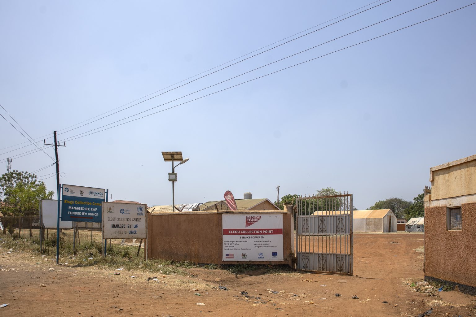 A 300 metri dal ponte si trova il Centro di raccolta (Collection point) di Elegu. Qui le autorità ugandesi dell’Ufficio del primo ministro (Opm), entità responsabile per il sistema di accoglienza, insieme all”Alto Commissariato delle Nazioni Unite per i Rifugiati (Unhcr) e a una squadra medica registrano i profughi appena arrivati e svolgono i primi controlli sanitari, somministrando vaccini se necessario, incluso quello contro il Covid-19.