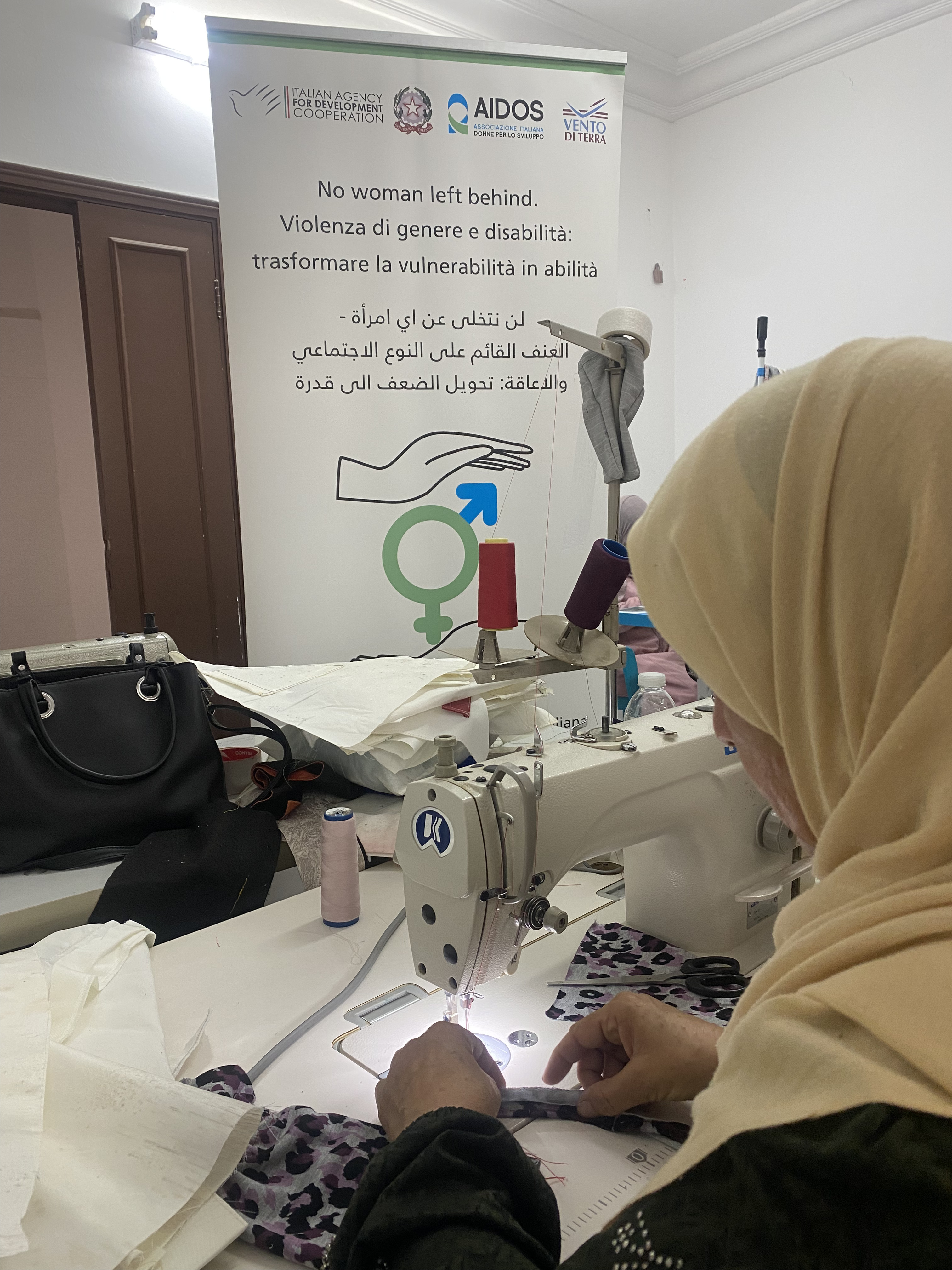 Il progetto “No Woman Left Behind: Violenza di genere e disabilità – Trasformare la vulnerabilità in capacità”, una collaborazione tra AIDOS e Vento di Terra, si rivolge a coloro che sono a rischio di violenza di genere: il 97% delle partecipanti proviene da comunità siriane vulnerabili. L’obiettivo è migliorare la qualità della vita delle donne fornendo servizi sociali e opportunità di lavoro, in modo da trasformare efficacemente la vulnerabilità in abilità. Nei primi otto mesi, sono stati conclusi con successo i cicli di formazione professionale di base per 164 donne e ragazze nella regione di Mafraq, a nord-est del Paese (dove si trova il campo dei rifugiati siriani di Za’atari) e la continuazione delle attività è pianificata fino all’estate inoltrata.
