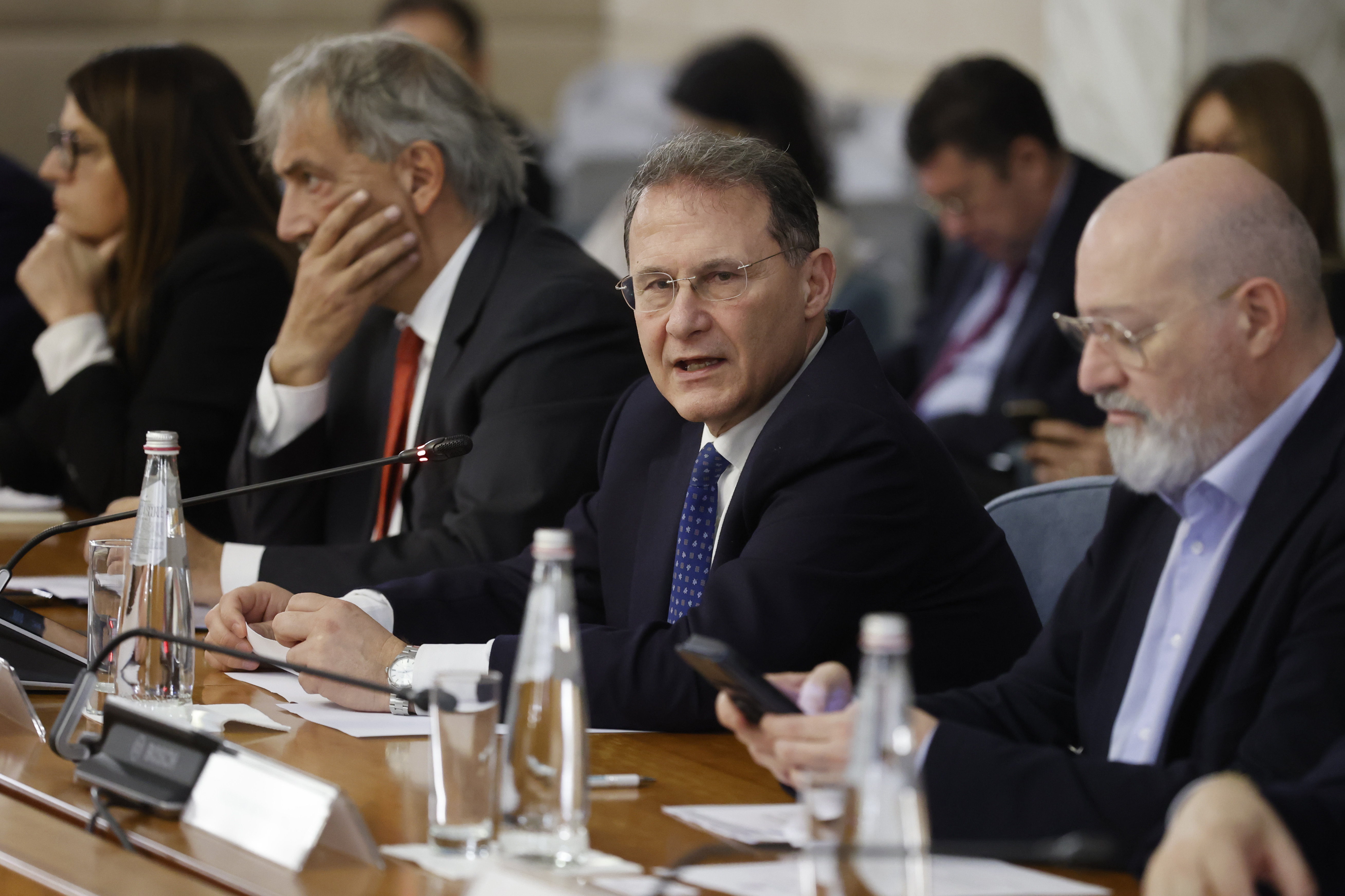 Il presidente della regione Lazio Francesco Rocca, il viceministro degli Esteri Edmondo Cirielli, il presidente Emilia Romagna Stefano Bonaccini partecipano all’evento sul Bando AICS per gli enti territoriali, presso la Farnesina, Roma, 28 marzo 2024, ANSA/VINCENZO LIVIERI