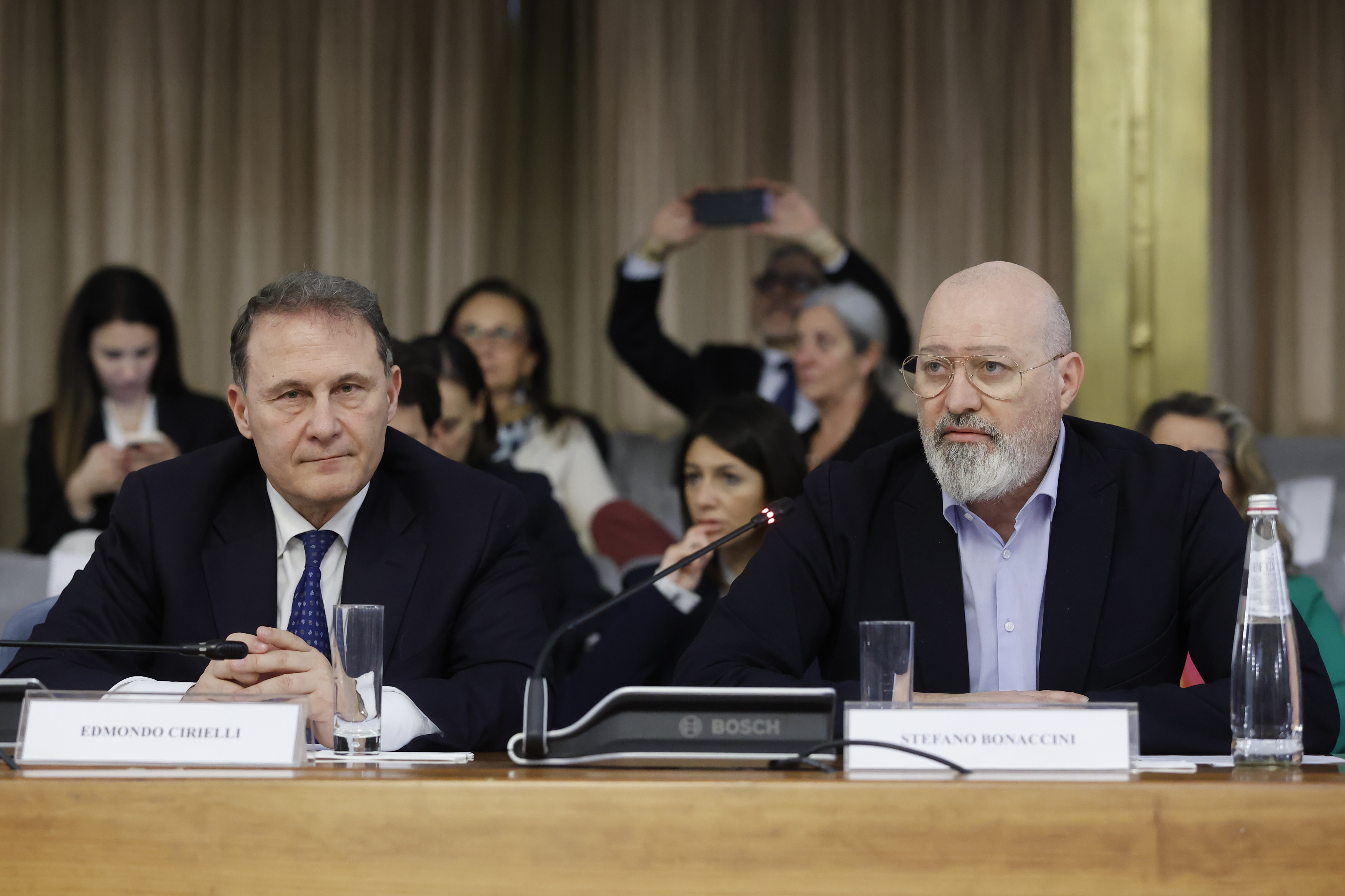 Il viceministro degli Esteri Edmondo Cirielli e il presidente Emilia Romagna Stefano Bonaccini partecipano all’evento sul Bando AICS per gli enti territoriali, presso la Farnesina, Roma, 28 marzo 2024, ANSA/VINCENZO LIVIERI