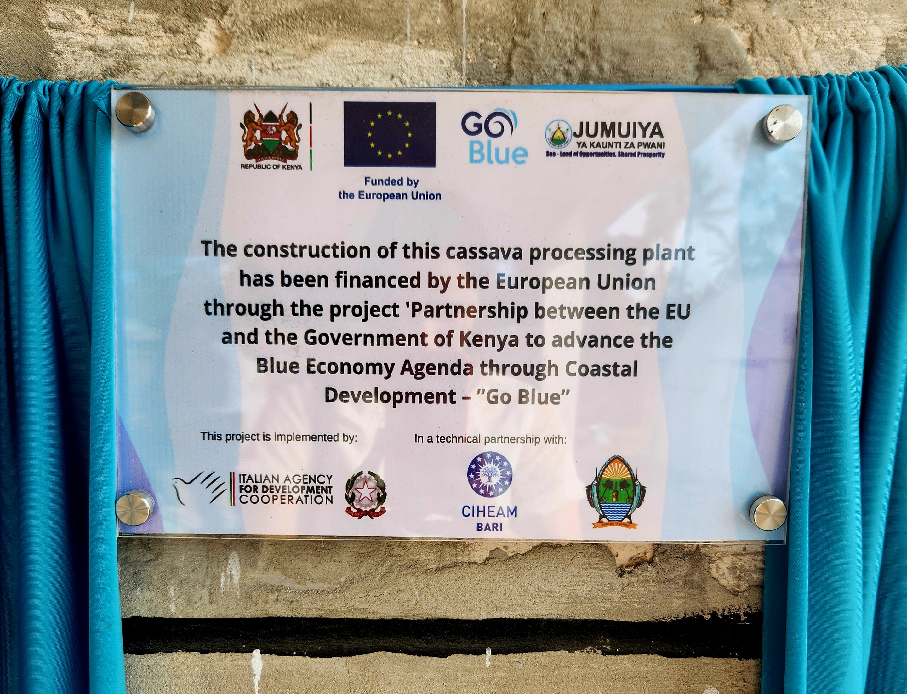 Giovedì 21 e venerdì 22 marzo si sono realizzate le cerimonie di consegna di due impianti di trasformazione della manioca a Matsangoni e Magodi, rispettivamente nelle contee costiere di Kilifi e Kwale, in Kenya. Gli impianti, alimentati ad energia solare e comprensivi di una struttura per l’essiccazione, sono stati donati alle comunità di piccoli agricoltori locali per dare impulso alla trasformazione dei prodotti agricoli. Le infrastrutture sono state realizzate attraverso la componente italiana del Programma Go Blue, finanziato dall’Unione Europea (UE) e realizzata dall’Agenzia Italiana per la Cooperazione allo Sviluppo (AICS) con il supporto tecnico dell’Istituto Agronomico Mediterraneo di Bari (CIHEAM Bari).