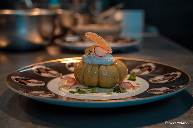 Omar Ngom ha vissuto, invece, a cavallo tra Senegal e Italia, dove ha imparato il mestiere di cuoco. Un amore, il suo, per il dettaglio, la precisione, per un gusto, oltre che culinario, estetico. Da qualche anno Omar è tornato a Dakar dove ha voluto fare tesoro della sua esperienza, proponendo piatti della tradizione italiana rivisitati con prodotti del territorio.