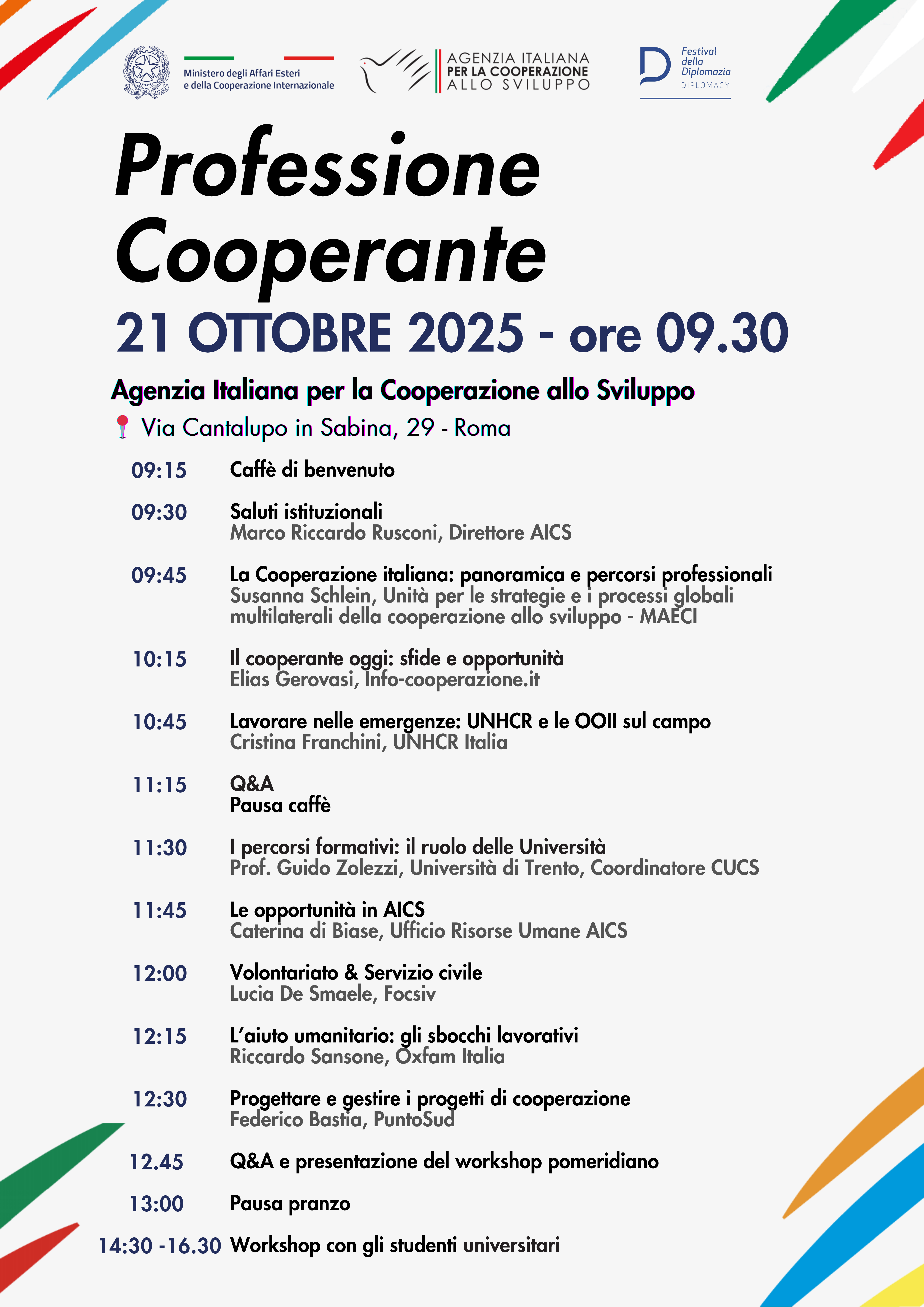 “The event, which we have titled Profession: Aid Worker, aims to showcase the skills, career paths, and concrete opportunities available to those who choose to dedicate themselves to international cooperation. It is crucial that young people understand which professional profiles are most in demand and how they can make a tangible contribution to sustainable development and the protection of human rights,” said Marco Riccardo Rusconi, Director of AICS.