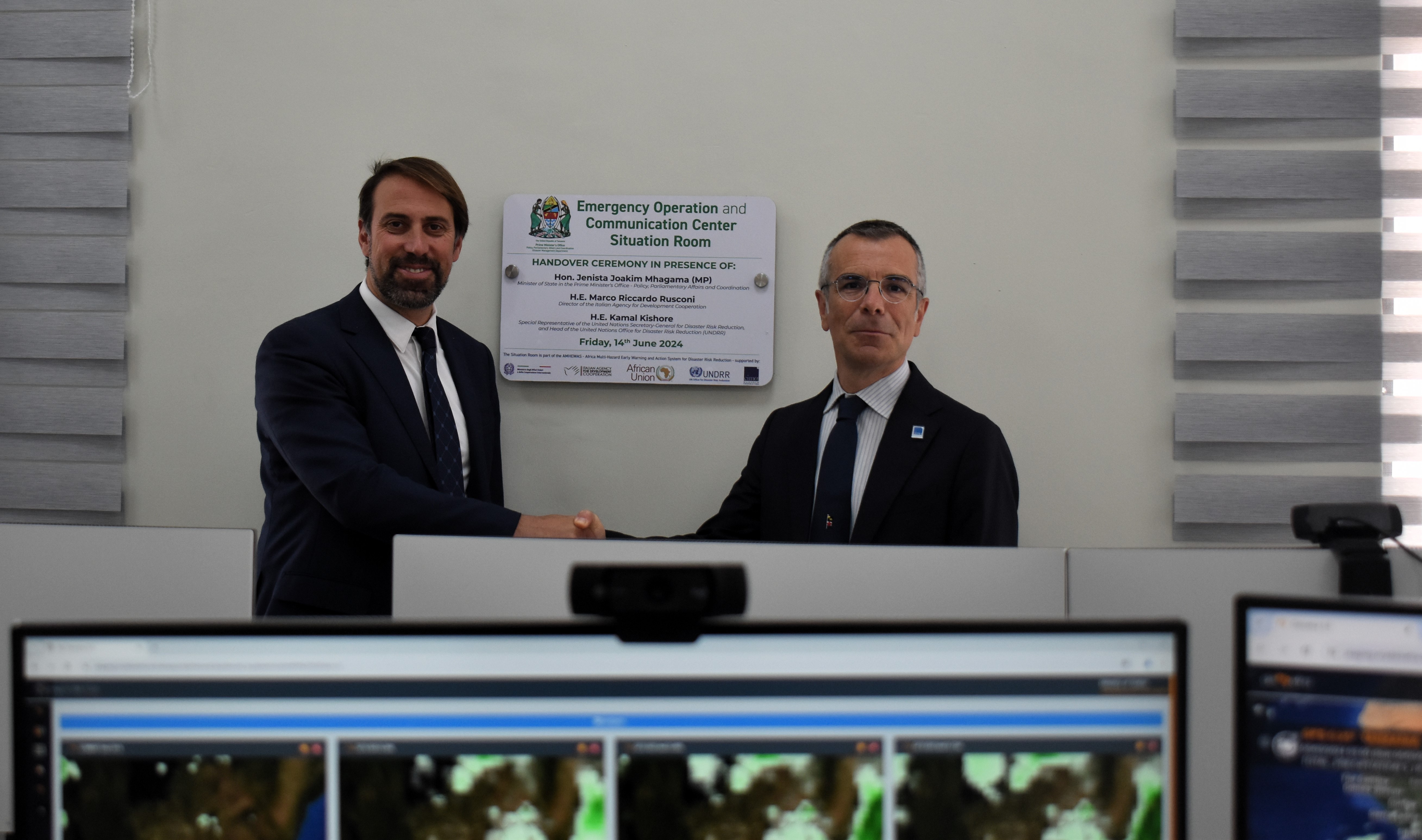 The event marked a milestone in the country’s journey towards building disaster resilience and was welcomed by supporters of the EOCC Situation Room, including the UN Office for Disaster Risk Reduction (UNDRR), which over two years provided technical support for its establishment, in partnership with the CIMA Foundation and with generous funding from the Government of Italy, through the Italian Agency for Development Cooperation (AICS).