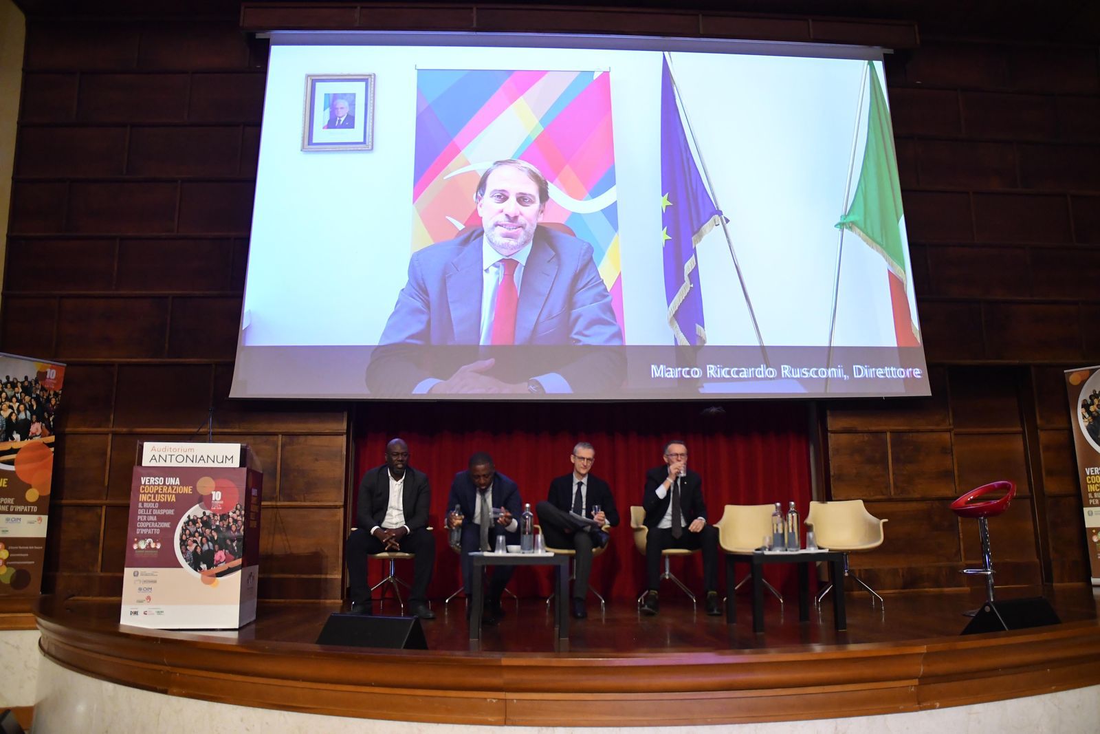 In rappresentanza di AICS sono intervenuti il Direttore Marco Riccardo Rusconi con un comunicato video ed il dottor Fabio Strinati dell’ufficio Sviluppo economico. Presente anche Stefano Gatti, Direttore Generale per la Cooperazione allo Sviluppo del Ministero degli Affari Esteri e della Cooperazione Internazionale che ha portato i saluti del Vice Ministro Edmondo Cirielli. I rappresentanti delle istituzioni hanno ribadito l’importanza del valore delle diaspore nella cooperazione allo sviluppo e delle partnership inclusive e multilivello.