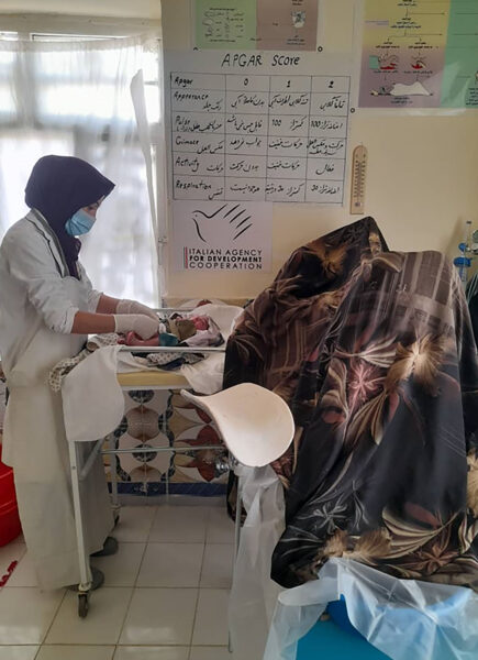 Photo credits: UNFPA – Un’ostetrica al lavoro presso la Family Health House di Masyan in Afghansitan, sostenuta dalla Cooperazione Italiana attraverso l’iniziativa “Supporto alle donne e alle ragazze adolescenti attraverso il potenziamento delle Family Health Houses (FHHs) quali hub centrali per la fornitura di servizi sanitari salvavita riproduttivi, materni, neonatali, infantili e adolescenziali” e attuata da UNFPA.