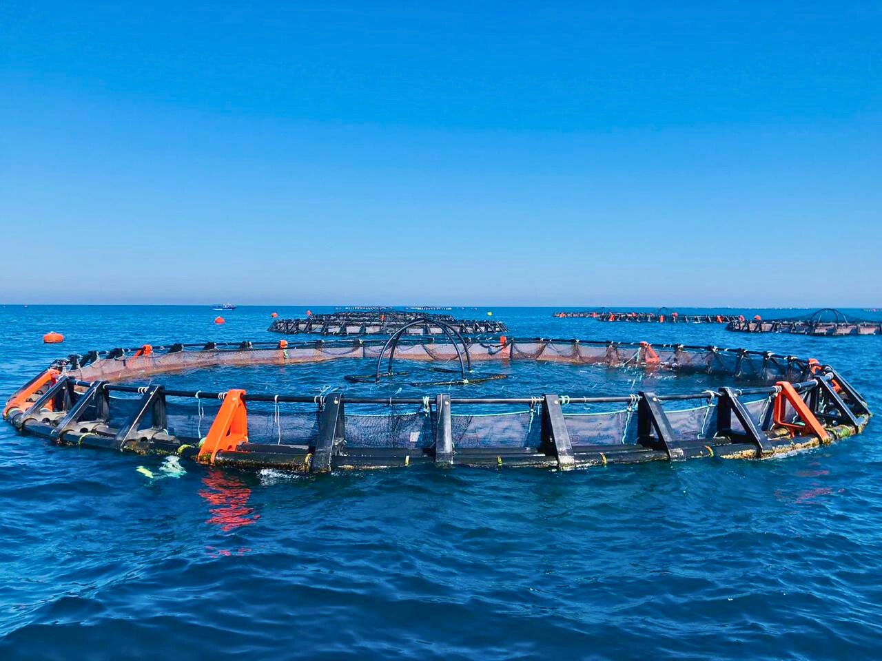 «Ho iniziato a lavorare nell’azienda di famiglia nel 2010, poi ho preso le redini della STEP nel 2013. L’acquacoltura, pur rappresentando una sfida quotidiana, si è rivelata una vera passione che ci ha spinti a diventare tra i pionieri del settore in Tunisia», racconta Mohamed. Grazie ad un primo finanziamento nel 2017 di circa 320.000 euro, proveniente dalla linea di credito da 73 milioni di euro della Cooperazione Italiana, abbiamo potuto acquistare 10 gabbie e un sistema di ormeggio. Successivamente, con un sostegno di circa 540.000 euro del programma PRASOC nel 2022, STEP ha compiuto importanti passi avanti dal punto di vista tecnologico. «Abbiamo raddoppiato la nostra capacità di selezione, passando da 1.500 a 3.000 kg all’ora, e siamo gli unici in Tunisia a disporre di un tunnel di congelamento», afferma con orgoglio. Dal 2025, STEP ha anche adottato le tecnologie Innovasea (sensori AquaMeasure, software Farm360, telecamere per il monitoraggio della biomassa e chiatta automatizzata nel 2026), che consentono un monitoraggio intelligente della crescita e l’ottimizzazione delle razioni alimentari.