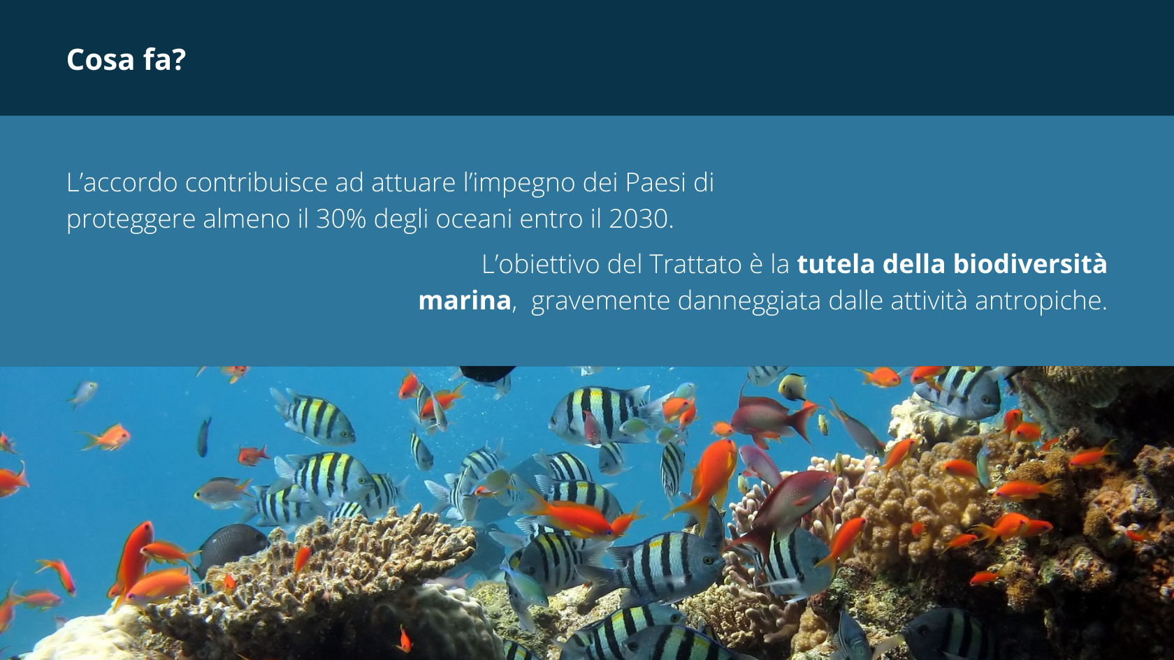 In questo contesto si inserisce la recente approvazione del Trattato delle Nazioni Unite sull’Alto Mare che, estendendo la tutela ambientale ai due terzi dell’oceano che si trovano al di fuori delle giurisdizioni nazionali, offre non solo l’opportunità di proteggere in maniera più efficace gli ecosistemi marini e oceanici, sempre più minacciati dall’attività dell’uomo, ma offre anche, a tutti gli Stati che vi aderiscono, l’opportunità di rafforzare il coordinamento multilaterale nella gestione delle risorse marine, promuovendo nuove forme di cooperazione e collaborazione internazionale dirette verso uno sforzo di conservazione e tutela degli ambienti marini globale e condiviso.